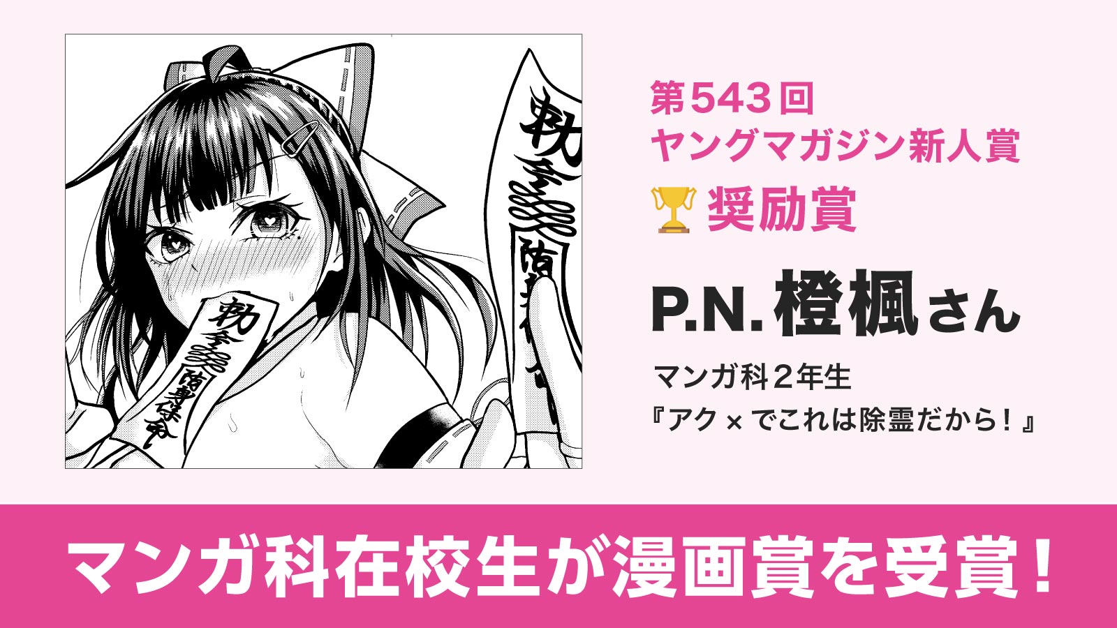 【マンガ科】「ヤングマガジン新人賞(第543回 2025年7月期)」にて、マンガ科2年生の橙楓さんが奨励賞を受賞!