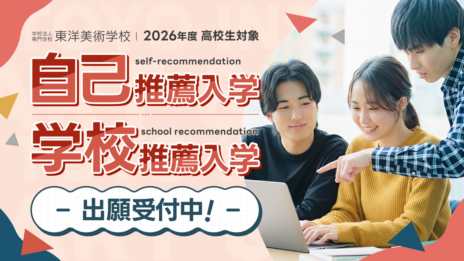 東洋美術学校では2025年10月1日(水)より、学校推薦入学・自己推薦入学の出願受付を開始します!