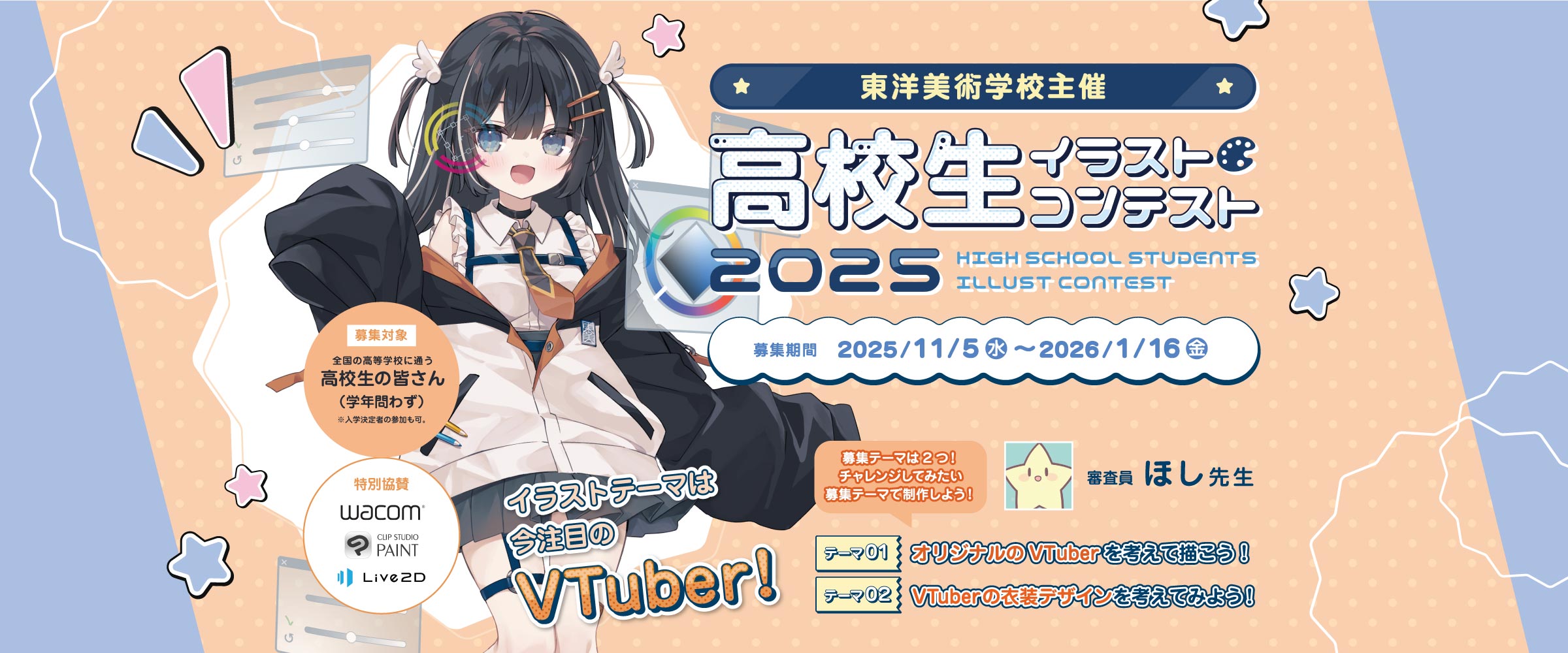 現在、東洋美術学校では高校生を対象としたイラストコンテストを開催しています。制作テーマや応募方法の詳細は、上記の特設ページをご確認ください。