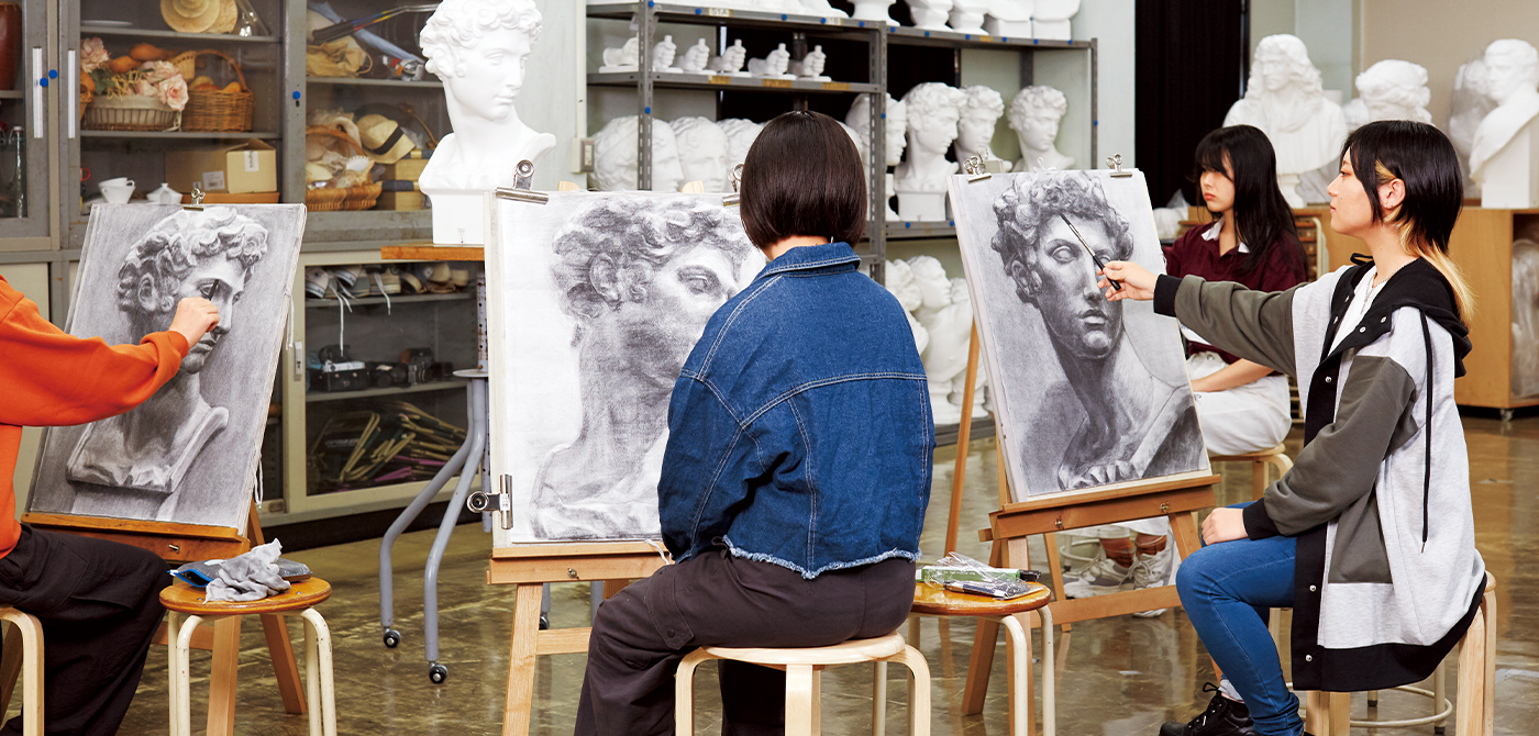 東洋美術学校では、多くの学科でデッサンの授業を取り入れ、基礎画力の強化を行っています。