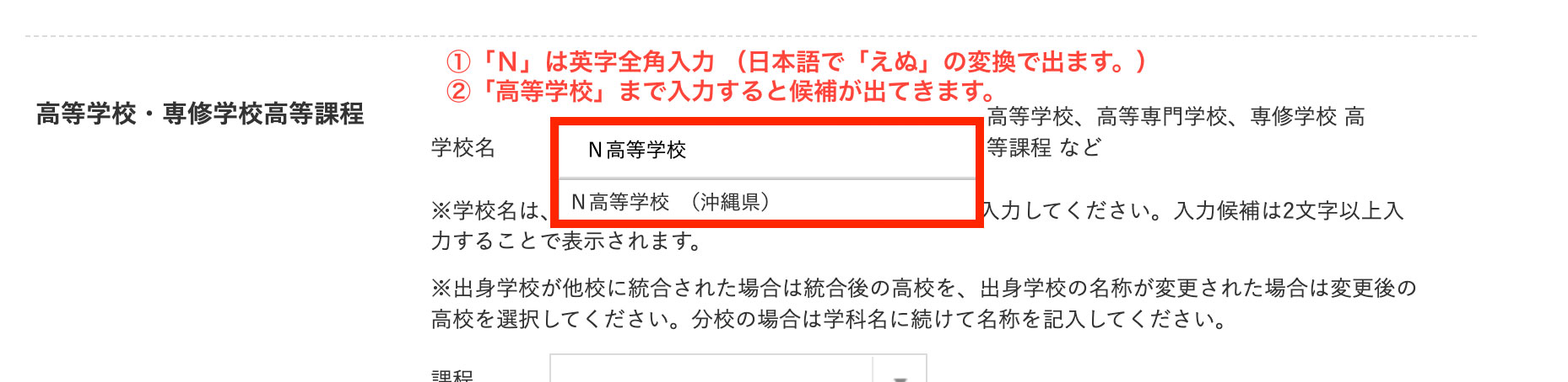 Web出願システムの仕様の都合上、全角入力かつ2文字以上の入力で候補が出てきます。