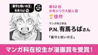 TOPICS 【マンガ科】「第62回少年シリウス新人賞」にて、マンガ科2年生の有馬ろばさんが佳作を受賞!
