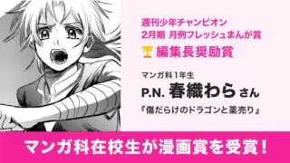 TOPICS 【マンガ科】週刊少年チャンピオン「2月期 月例フレッシュまんが賞」にて、マンガ科1年生の春織わらさんが編集長奨励賞を受賞!