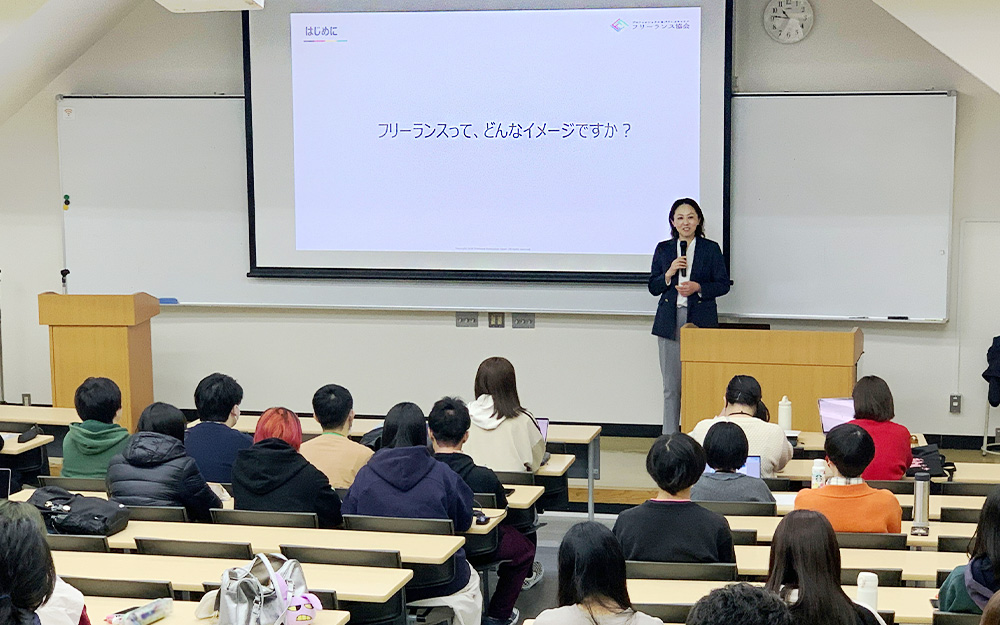就職を目指す学生はもちろん、フリーランスや副業での活動を視野に入れている学生に向けても、実践的な指導を行っています。